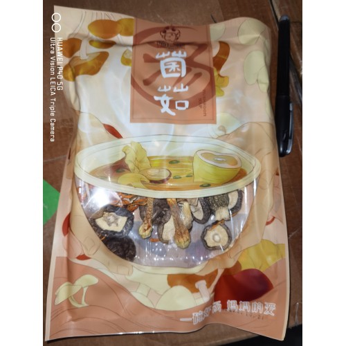 Product Description:This pack is full of various mushrooms, scientifically proportioned with genuine materials. These precious mountain mushrooms are rich in nutrients, and they are picked from their place of origin and selected by hand.