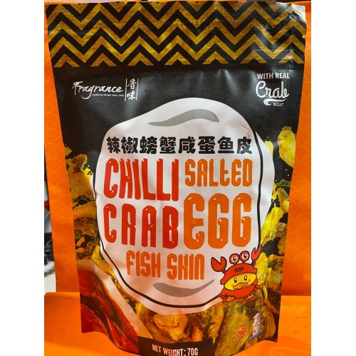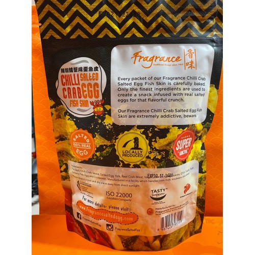 Product Description:Infused with Singapore's most popular dish, Chilli Crab Salted Egg Fish Skin is the latest addition to the salted egg lineup. Add real chilli crab for a more authentic taste.